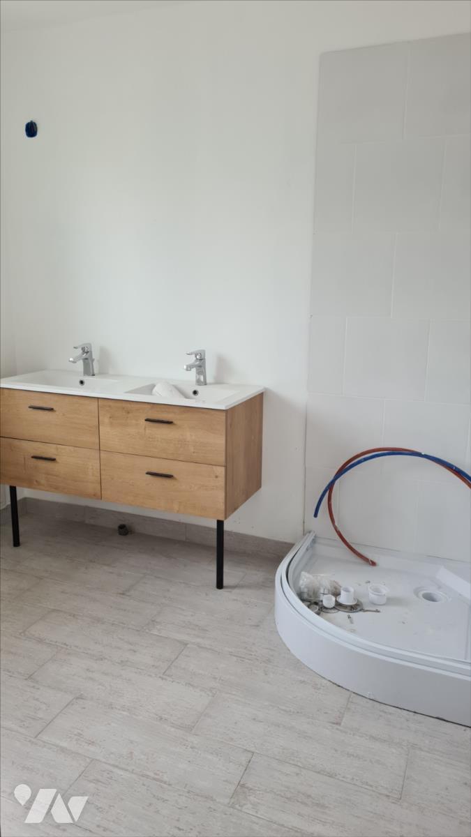 Maison de plain pied : pièce de vie (27m² ) cuisine, salle de bains, 2 chambres WC , buanderie